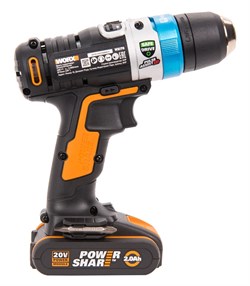 • Универсальность аккумулятора. Дрель работает от универсального аккумулятора Powershare 20 В, который совместим со всеми мобильными инструментами WORX. Длительный срок службы аккумулятора обеспечивается электронной платой защиты от глубокого разряда.