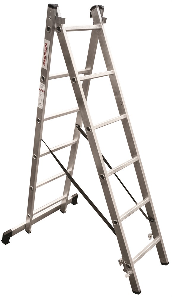 Алюминиевая двухсекционная лестница Новая Высота NV 122 2x6 1220206 обеспечивает прочность и надёжность при небольшом весе изделия. Возможно пользование как приставной лестницей, приставной выдвижной лестницей или стремянкой.