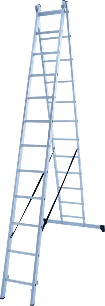 Алюминиевая двухсекционная лестница Новая Высота NV 122Y 2x12 1220212Y обеспечивает прочность и надёжность при небольшом весе изделия. Возможно пользование как приставной лестницей, приставной выдвижной лестницей или стремянкой.