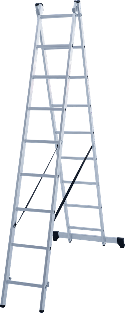 Алюминиевая двухсекционная лестница Новая Высота NV 122Y 2x9 1220209Y обеспечивает прочность и надёжность при небольшом весе изделия. Возможно пользование как приставной лестницей, приставной выдвижной лестницей или стремянкой.