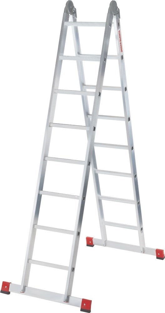 Алюминиевая двухсекционная лестница Новая Высота NV 331 2х6 3310206 обладает повышенной прочностью и надёжностью при небольшом весе, простотой установки и высоким уровенем комфорта. Отличительная особенность таких лестниц-трансформеров - широта возможных позиций, в которых их можно использовать, а также их компактность, что облегчает их перемещение и транспортировку. Регулировка положения лестницы осуществляется с помощью стальных шарниров, которые обеспечивают надежную автоматическую фиксацию выбранного положения лестницы. В целях удобства и безопасности при эксплуатации, лестница оснащена противоскользящими рельефными ступенями.