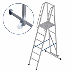 Алюминиевая лестница-платформа Мегал фиксированной высоты передвижная с траверсой ЛПФВА Н=2,0-5
