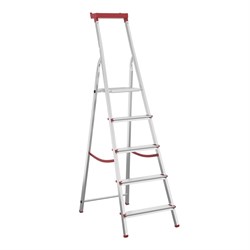 Алюминиевая стремянка Alpos 5 ступеней 32-05 предназначена для бытового использования. Легкая и практичная. Стремянка имеет практичный контейнер для инструментов шириной 30 см. Широкие ступени рифленого профиля, шириной 80 мм, способствуют комфортной и безопасной работе. Высокий поручень, 60 см, обеспечивает безопасный подъем. Платформа и другие соединительные элементы изготавливаются из оцинкованной стали. Максимальная рабочая нагрузка стремянки 150 кг.