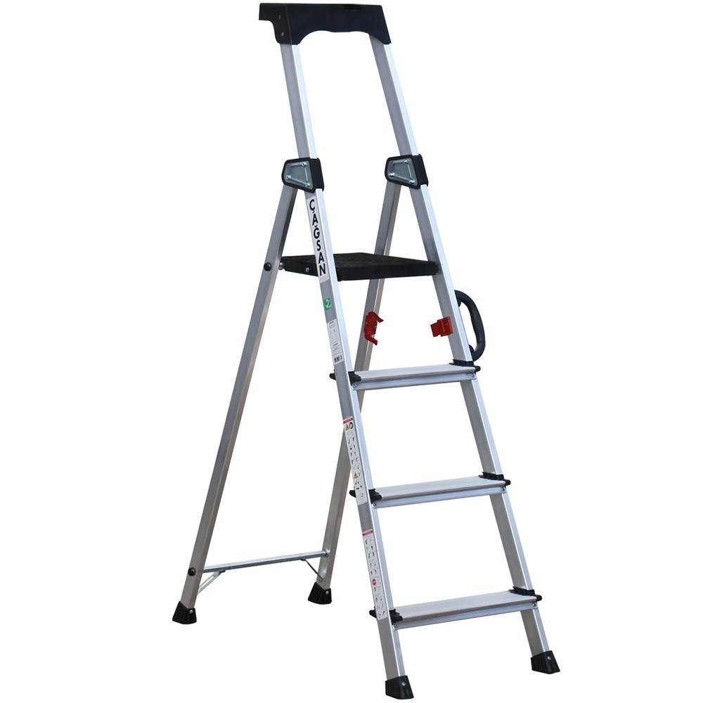 Алюминиевая стремянка CAGSAN Hazar 4 ступени HA103 имеет увеличенный шаг ступеней – 28 см. Другими словами, высота площадки 5-ти ступенчатой стремянки Хазар соответствует высоте обычной 6-ти ступенчатой стремянки. Ширина стремянки также на 10-15% больше чем у одноклассников.