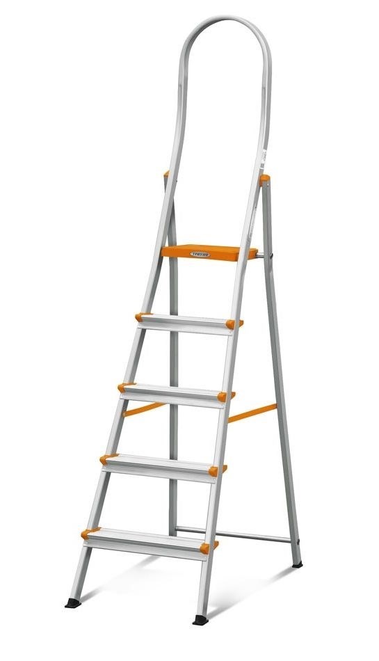 - Максимум удобства обеспечивают поручень-перила. Впервые на стремянках этого класса за счёт сложной системы гибов применен сверхвысокий поручень - 80 см. Он позволяет находиться на площадке с непревзойденной уверенностью: его не нужно искать где-то на уровне колен, сгибаясь и боясь потерять равновесие. Поручень всегда под рукой, удобный для захвата и готовый к поддержке.