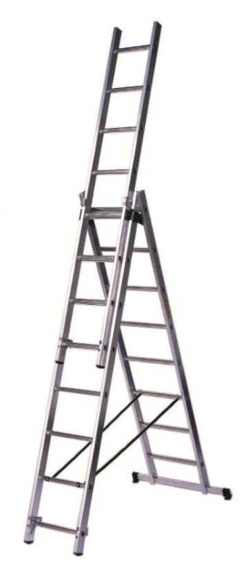 - Трехсекционное разделение позволяет удобно хранить и транспортировать лестницу.