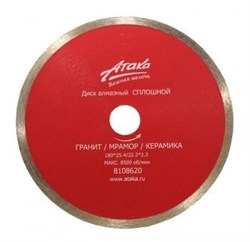Диск алмазный Атака 200 * 7 * 25,4 / 22,2 сплошной / гранит, мрамор, керамика
