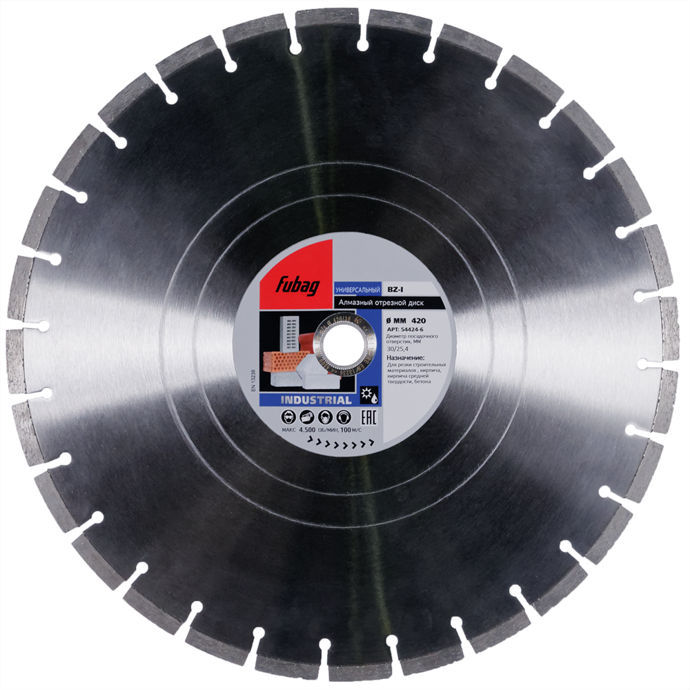 Алмазный диск Fubag BZ-I 450x30-25,4мм с сегментной режущей кромкой предназначен для резки строительных материалов, кирпича, кирпича средней твердости, бетона.