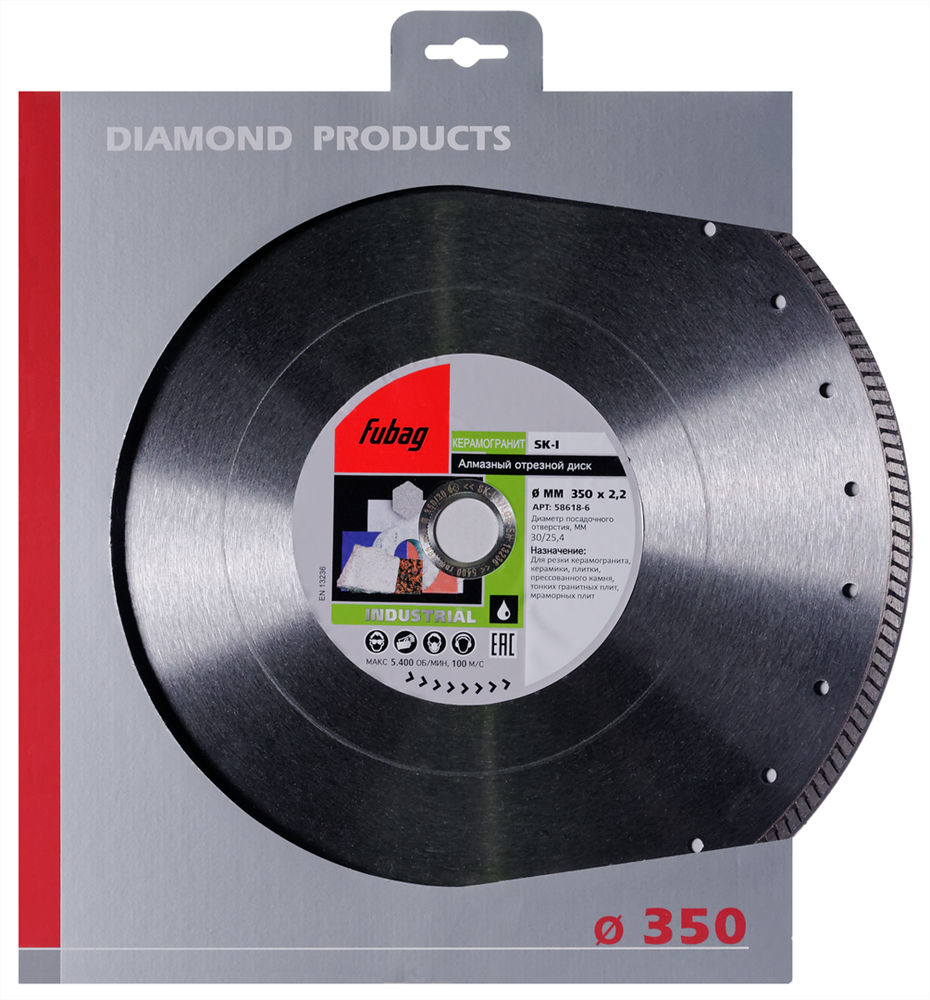 Алмазный диск Fubag SK-I 350x30-25,4мм с турбо режущей кромкой, предназначен для резки керамогранита, керамики, плитки, прессованного камня, тонких гранитных плит, мраморных плит.
