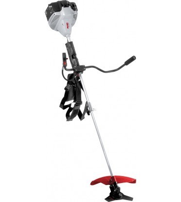 Бензиновый триммер AL-KO BC 4535 II-S Premium - ручной бензиновый триммер для работ на дачном участке. В отличие от газонокосилок справляется с работой на участках со значительными неровностями и сложной планировкой. Универсальная модель, которая одинаково хорошо скашивает траву леской и ножом. Для скашивания газонной травы предпочтительно использование лески. Полуавтоматическая триммерная головка располагает шириной обработки в 41 см. Для более жесткой растительности, плотной сорной травы или кустарника рекомендуется использовать трехзубчатый режущий нож. Рабочая ширина в таком случае достигает 25 см. В обоих случаях пользователь надежно защищен от выброса песка, камней и веток нижним предохранительным кожухом. В основу триммера положен двухтактный двигатель мощностью 1,1 кВт или 1,5 л.с. Двигатель экологичен, снабжен системой быстрого пуска. Во избежание повреждений двигатель и топливный бак бензинового триммера закрыты прочным металлическим кожухом. Основные рабочие узлы садового инструмента из стали. Для ведения триммера используется рукоятка велосипедного типа. С такой рукояткой значительный вес (8,7 кг) равномерно распределяется для менее утомительной работы. Рукоятка допускает вертикальную регулировку. Данная функция позволяет менять высоту ручки, настраивая ее под свой рост. Кроме этого, в комплекте с бензиновым триммером AL-KO BC 4535 II-S поставляется ременная оснастка. Двойной плечевой ремень снимает часть нагрузки с рук. Элементы управления встроены в правую ручку инструмента. Обе ручки имеют мягкие накладки для более комфортного захвата. Мотокоса данной модели относится к группе инструментов с разъемной штангой. Такие триммеры легко разбираются, например, для транспортирования в багажнике. Также такие модели удобно хранятся, так как требуют меньше места для размещения.