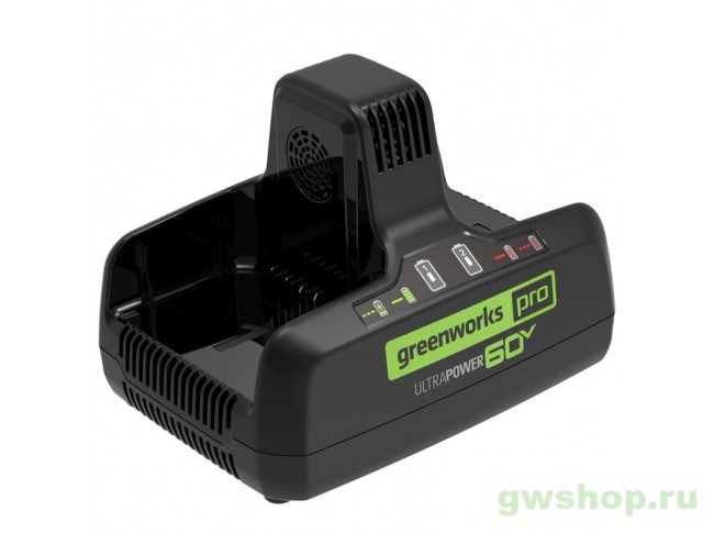 Универсальное зарядное устройство платформы Greenworks 60V PRO. Предназначено для работы со всеми аккумуляторными батареями Greenworks 60V.