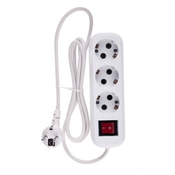 Бытовой удлинитель с заземлением и выключателем Denzel УХз10 2 м, 3 розетки 95970