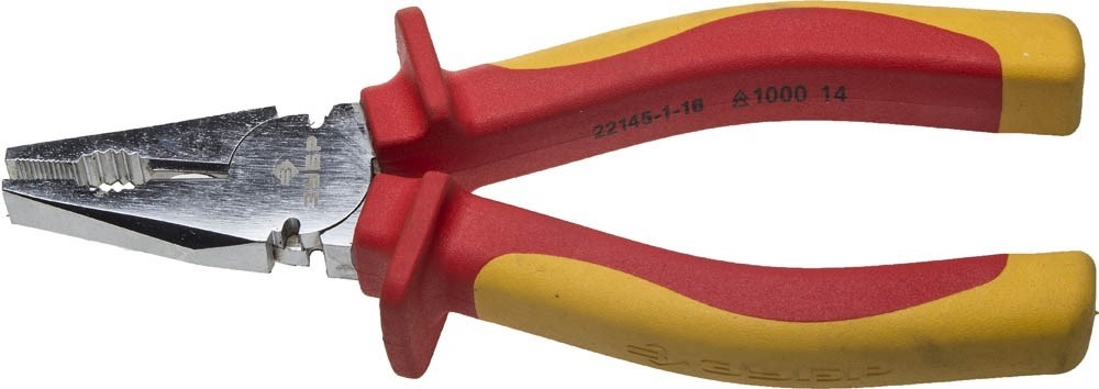 Диэлектрические комбинированные плоскогубцы Зубр Профессионал Профиэлектрик 160мм 22145-1-16 - сертифицированные плоскогубцы с защитным хромовым покрытием. Надежный инструмент при выполнения электромонтажных работ под напряжением до 1000В. Каждая единица продукции прошла тестирование на пробой 10000В в течение десяти секунд и допущена к использованию при электроустановочных работах.