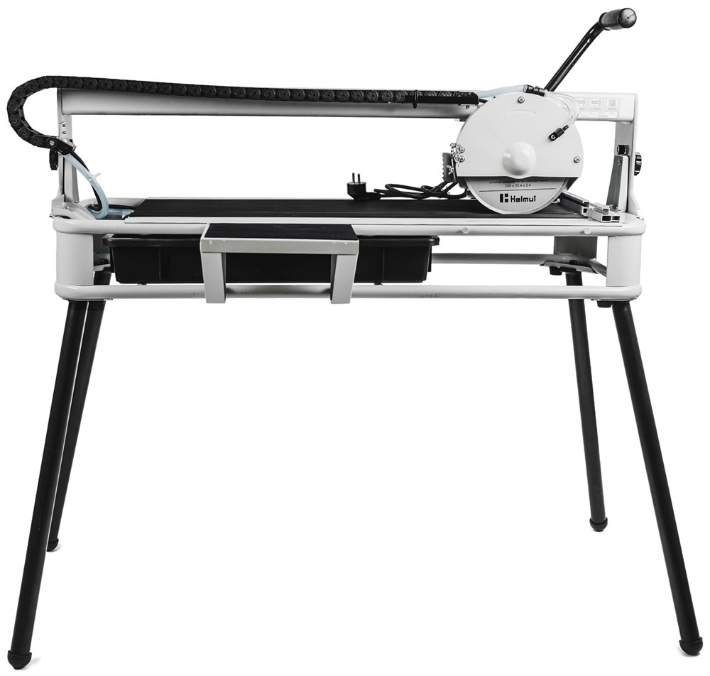 Электрический плиткорез Helmut FS200 используется для выполнения небольшого объема работ по разрезанию облицовочной или тротуарной плитки. Размер рабочего стола 1020 x 402 мм. позволяет осуществлять рез длинной до 720 мм., а верхняя направляющая дает возможность делать пропилы под углом 45° на глубину до 30 мм. Станок имеет водяное охлаждение, это убережет заготовку и оснастку от порчи и перегрева. Так же, для удобства, устройство оснащено съемной, дополнительной полкой, которая в случае необходимости, расширит площадь рабочей поверхности.