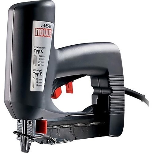 Электрический степлер Novus J-165 EC позволяет легко декорировать дом или садовый участок. Благодаря длинному носику применяется для крепления зацепов на стандартных деревянных панелях. Отсутствие обратного удара упрощает длительную работу. Благодаря специальному окну упрощается загрузка скоб. Ручная функция многоразового удара предназначена для работ с твердыми материалами. Крепежным инструментом являются, как скобы, так и гвозди.