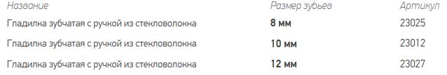 Гладилка зубчатая с ручкой из стекловолокна Kapriol для нанесения и распределения различных растворов по стенам, полу и потолку; кроме этого, с её помощью сглаживаются швы и большие неровности.