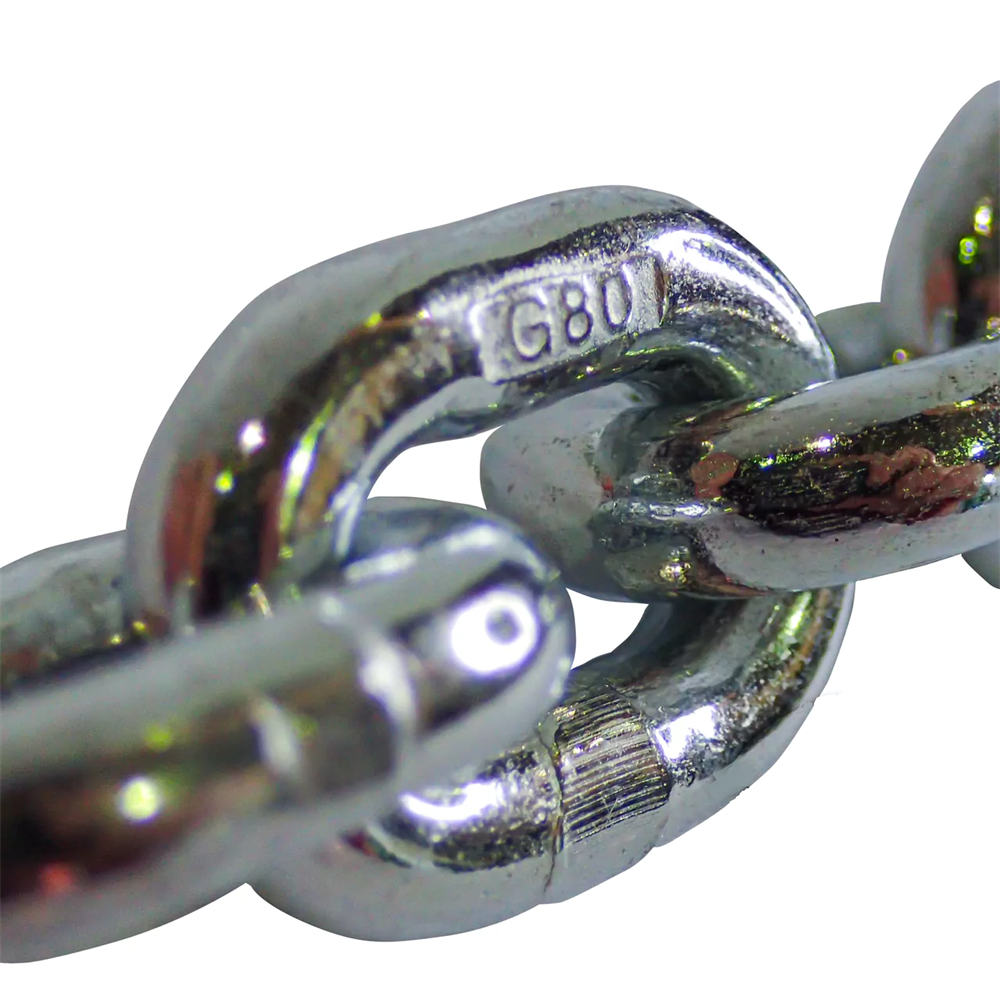- Цепь соответствует стандартам: EN-818, 8 класс прочности, Т8, G80, ISO/80, ГОСТ 30188-97