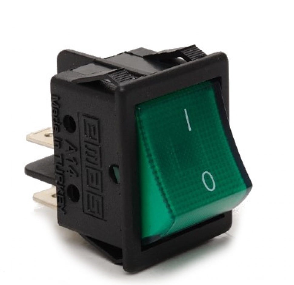 Клавишный выключатель EMAS с подсветкой, зеленая клавиша A14B1Y11