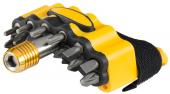 Комбинированный набор бит REMS состоит из держателя для быстрой смены бит, магнитного, с автоматической блокировкой бит, 12 бит (4 Torx, 3 под крест PH, 3 под крест PZ, 2 под шлиц), в практичном вставном магазине с эластичной летной для крепления и фиксации на запястье или на отвертке. Предназначен для аккумуляторной дрели-отвертки REMS Хеликс VE.