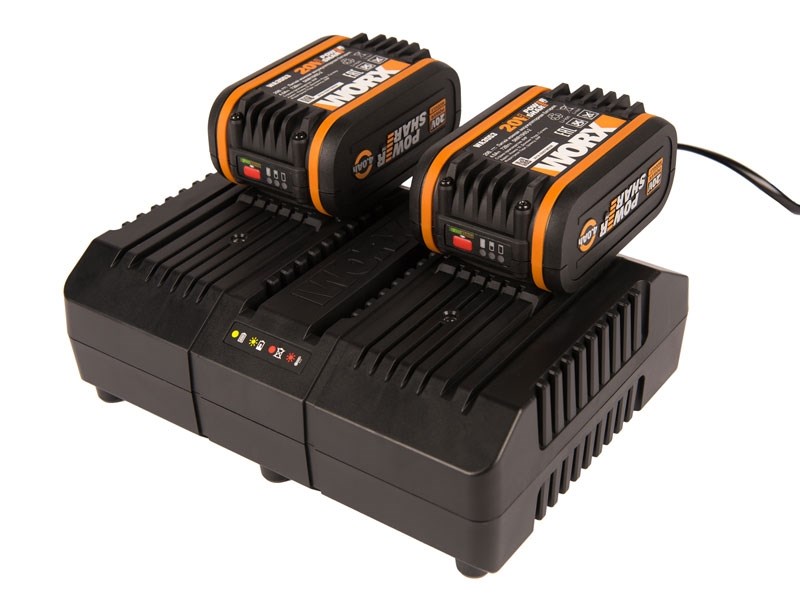 Комплект: двойное зарядное устройство WORX WA3883 + 2 АКБ 4.0 А/ч - это практичное решение для всех инструментов WORX 20В.