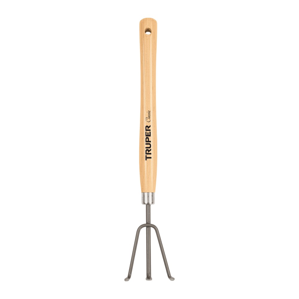 Культиватор Truper GTL-CV 15036 садовый Рабочая часть – углеродистая сталь с защитным Anti-stick покрытием Надёжное крепление к рукоятке обжимным кольцом Удлиненная полированная рукоятка из качественной древесины с отверстием для подвешивания существенно расширяет площадь обрабатываемого участка. Она удобно лежит в руке, уход – максимально простой, достаточно вымыть и протереть сухой салфеткой Культиватор с тремя зубьями для рыхления почвы и удаления сорняков