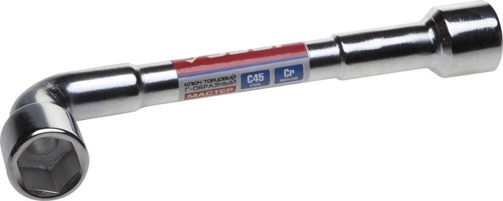 L-образный торцевой ключ Зубр Мастер 22мм 27185-22 представляет собой вороток с двумя жестко закрепленными торцевыми головками, оси вращения которых взаимоперпендикулярны. Одна сторона (короткая) ключа имеет сквозное (проходное) отверстие. Применяется при массовом производстве, в первую очередь при работе с длинными резьбовыми деталями (шпильки) или в труднодоступных местах, заменяя головку, вороток и удлинитель.