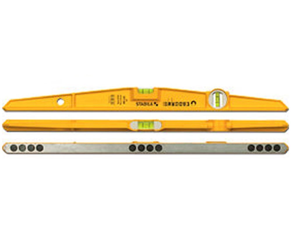 Магнитный уровень Stabila 81 SM 60 см 02514 - прочный алюминиевый профиль (литьё под давлением) с узкой и скошенной формой, которая обеспечивает максимальное удобство. Электростатическое специальное порошковое покрытие позволяет легко очистить уровень от загрязнений. Уровень с точно отфрезерованной измерительной поверхностью не оставляет следов на покрытиях, например на гладкой лицевой кладке. Технология сборки уровней STABILA обеспечивает точность измерений на протяжении долгого времени. Точность измерения в нормальном положении составляет +/- 0,5 мм/м, в перевёрнутом (над головой) +/- 0,75 мм/м. Пузырьковый уровень STABILA, тип 81 SMТип 81 SM: удерживающая сила ферритового магнита требуется, прежде всего, при строительстве металлоконструкций. С этими магнитами у пользователя всегда свободны руки для выравнивания и регулировки конструктивных элементов.