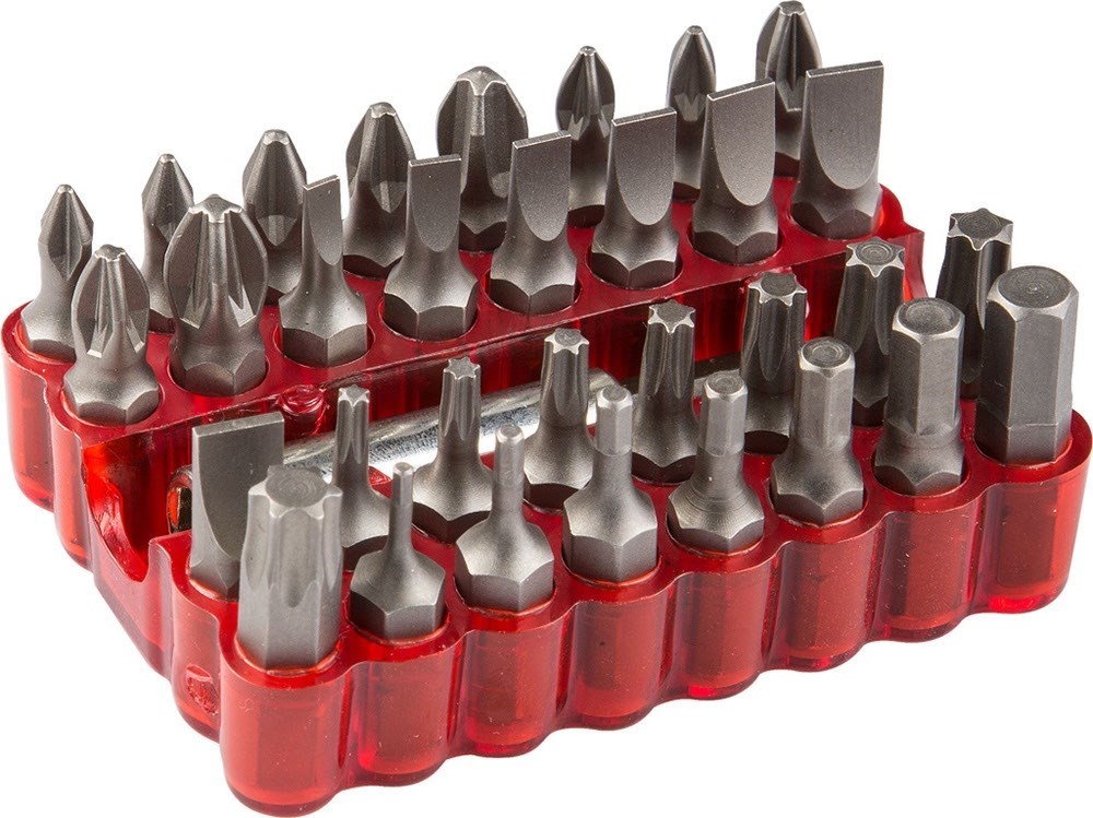 Набор бит Зубр с магнитным адаптером, 33 предметов 26045-H33 предназначен для монтажа и демонтажа резьбовых соединений. Тип хвостовика C 1/4".