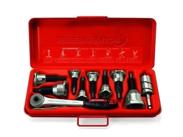 Набор для отбортовки Rothenberger 1/2"-5/8"-3/4"-7/8'' 22121 предназначен для изготовления отводов на уже проложенных трубах без их демонтажа, экономит время и упрощает монтаж. Отпадает необходимость приобретения и хранения тройников. Подходит для мягкой и твердой меди, алюминия и тонкостенной стали.