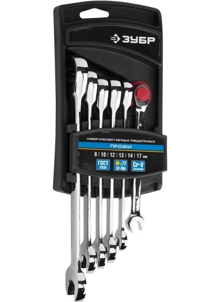 Наборы комбинированных ключей с трещоткой Зубр Профи