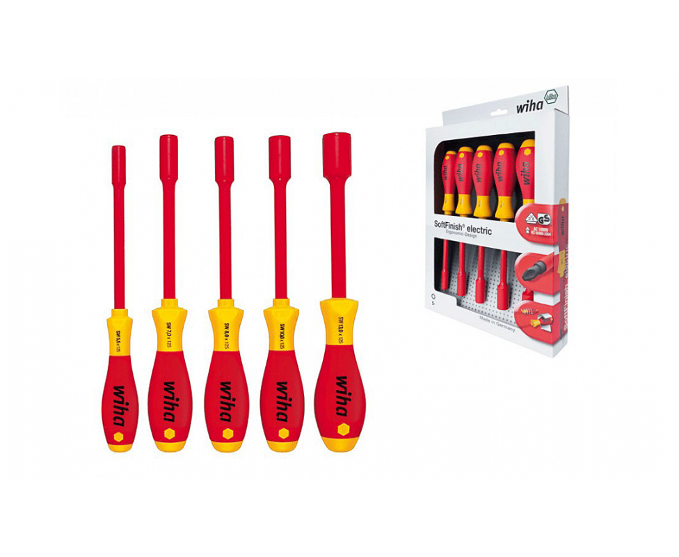 Набор отверток Wiha SoftFinish electric 322 K5 29466 представляет собой набор диэлектрических отверток профиля Hex nut с жалом из высококачественной хромванадиевой стали. Защитное изоляционное напыление гарантирует безопасность (VDE и GS) при работе с деталями под напряжением до 1000 В переменного тока.Особенности: