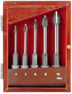 Набор сверл по кафелю, керамике, стеклу Зубр Эксперт 4-10мм 29845-H5 - надежный и проверенный инструмент высокого качества. Благодаря четырём режущим лезвиям сверление осуществляется в два раза эффективней.