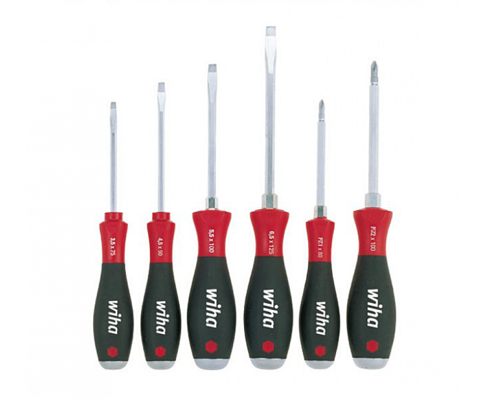 21250 Wiha Набор отвёрток SoftFinish Шлиц, Phillips, 6 предм., со сквозным шестигранным жалом и массивным стальным набалдашником (серия 530) | ударные |
