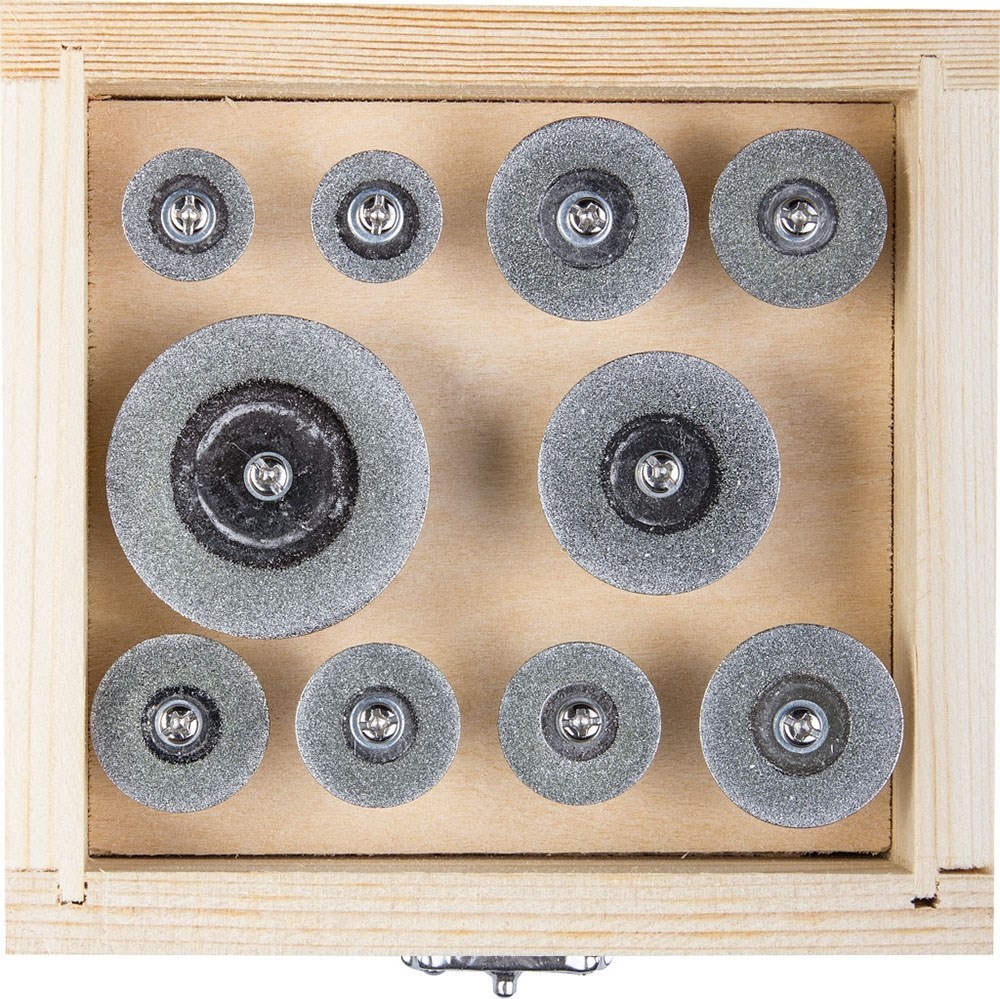 Набор Зубр Эксперт Мини-круги с алмазным напылением на шпильке 16-40мм 33385-H10 включает мини-круги для гравировальной бормашины, в комплект входит 10 предметов. Насадки имеют алмазное напыление и шпильку. Набор поставляется в пластиковом боксе.