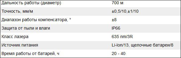 - Дальность работы с приемником лазерного луча до 700 метров.