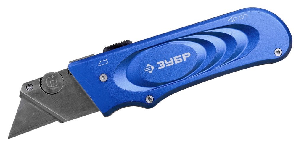 Нож Зубр Эксперт с трапециевидным лезвием тип А24 09225 применяется для профессионального реза резаразличных материалов (линолеум, ковровые покрытия, гипсолитовые плиты, гипсокартон, кровельные материалы, пластик, дерево), с применением значительных усилий.
