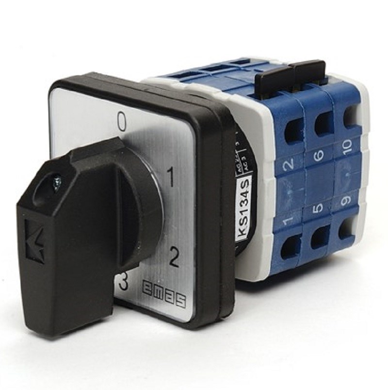 Однофазный многоступенчатый переключатель EMAS (0-5), 25А PSA025KS135S представляет собой механическое устройство без собственного потребления электроэнергии и предназначен для установки в качестве коммутационных аппаратов в электрических цепях. Также может использоваться как главный выключатель или групповой переключатель для управления приводами на основе одно-и трехфазных двигателей, переключения с требуемой программой коммутации цепей управления, сигнализации, в измерительных цепях. Используется в электрических цепях переменного тока напряжением от 220 до 400 В.