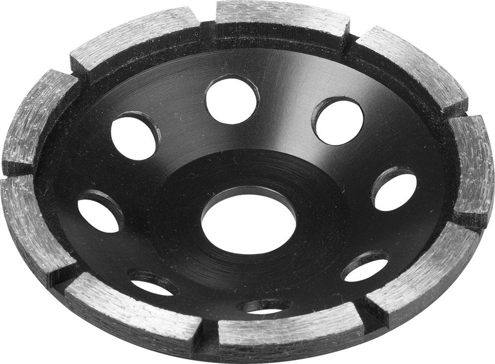 Однорядная сегментная алмазная чашка Зубр 125мм 33373-125 содержит в качестве основного рабочего элемента синтетический алмаз повышенной твердости. Корпус алмазной чашки изготовлен из высокопрочной стали. Каждое изделие проходит строгий контроль качества, особое внимание уделяется сбалансированности, т.к. инструмент работает на больших оборотах.