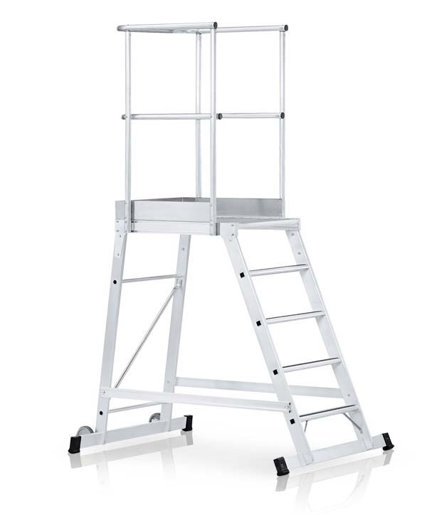 Передвижная лестница с платформой Zarges Z600 односторонняя, 5 ступеней 40065 идеально подходит для профессиональных строителей, электриков, плотников и других специалистов, которым необходимо работать на высоте с удобством и безопасностью.