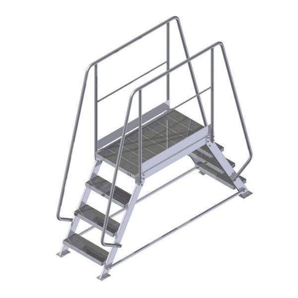 Переходный мостик ALUR МП-0,54х2,0х1,5 обеспечивает безопасный переход над конвейерными лентами, используется для обслуживания разнообразного оснащения на складах, в магазинах, на производстве.