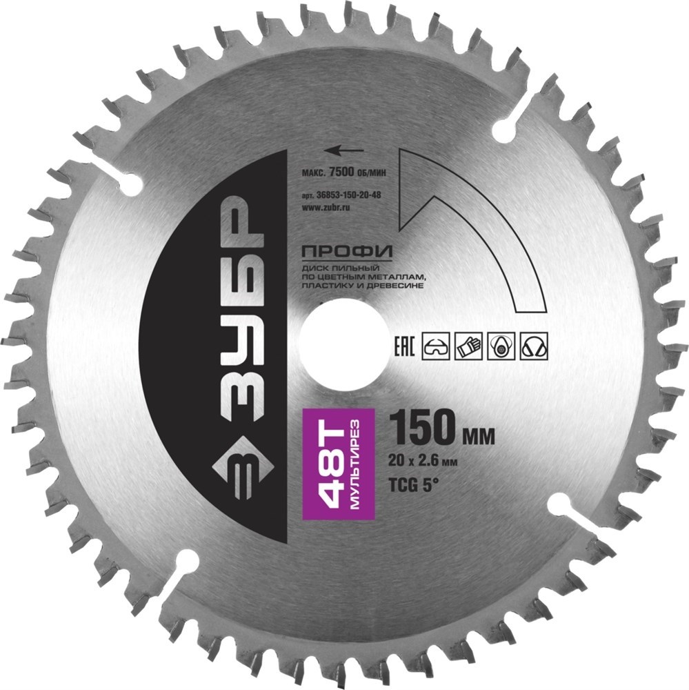 Пильный диск по алюминию Зубр Профессионал Мультирез 150x20мм, 48Т 36853-150-20-48