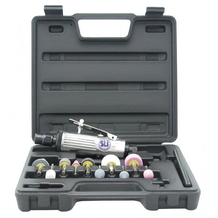 Прямая пневмошлифмашина Sumake ST-P7732МК с набором шарошек используется для шлифовки поверхностей в труднодоступных местах. Корпус выполнен из металла, что делает его крайне устойчивым к механическим повреждениям. Инструмент и набор оснастки поставляются в удобном кейсе, где каждому предмету выделено свое место. Это исключает необходимость поиска и решает вопрос с хранением и транспортировкой.