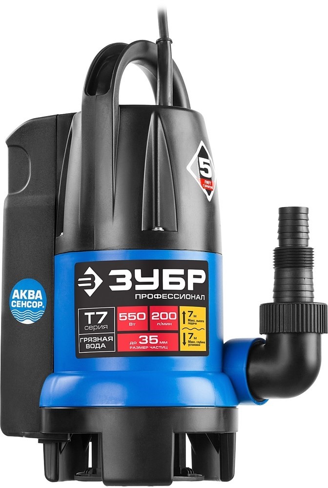 Погружной дренажный насос Зубр Профессионал АкваСенсор для грязной воды 550 Вт НПГ-Т7-550