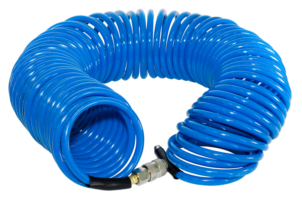 Полиуретановый спиральный шланг Fubag с фитингами рапид 6x10мм, 15м предназначен для соединения компрессора и пневмоинструмента.