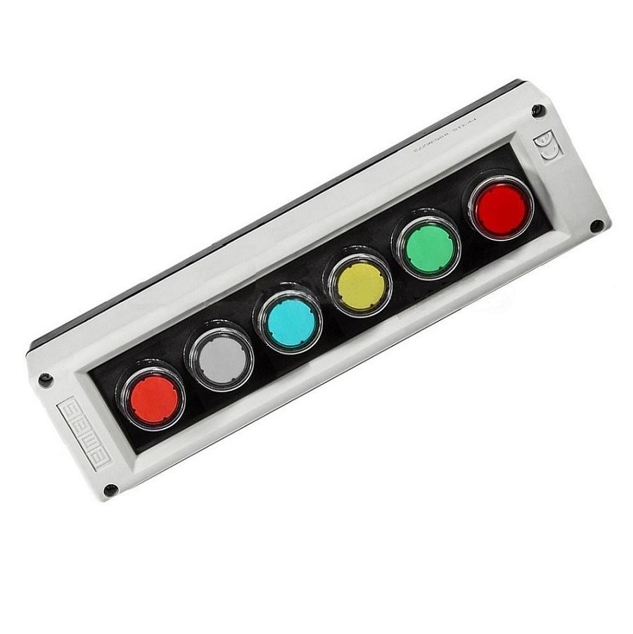 Пост EMAS 6 кнопок PK6 предназначен для предупреждающей и аварийной сигнализации при размещении ее в стационарных установках. Пост управления EMAS изготовлен из высококачественного пластика армированного стекловолокном.