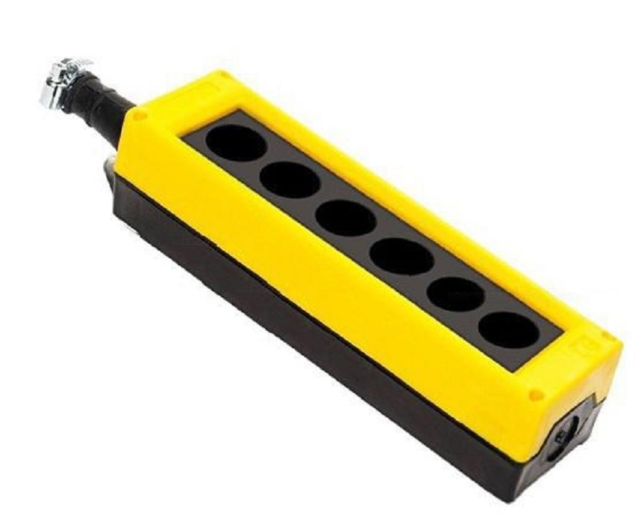 Пульт управления EMAS (пустой) PVK6BOS предназначен для управления кранами, кран-балками, тельферами, цепными и канатными талями, мостовыми и козловыми кранами. Может иметь несколько вариантов исполнения: двух, трех, четырех, пяти, шести, семи, восьми, девяти, десяти, одиннадцати и двенадцати кнопочные, и включать аварийный останов, аварийный сигнал, сигнал, ключ марка, кнопка (переключатель) вкл / выкл питания, световым фильтром, клавишами увеличения или уменьшения скорости работы двигателя, двух или четырех позиционными джойстиками. Пульт управления EMAS изготовлен из высококачественного пластика армированного стекловолокном,