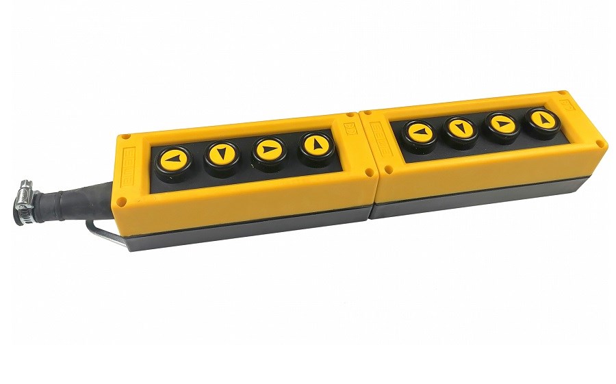 Пульт управления EMAS PVK8E предназначен для управления кранами, кран-балками, тельферами, цепными и канатными талями, мостовыми и козловыми кранами. Может иметь несколько вариантов исполнения: двух, трех, четырех, пяти, шести, семи, восьми, девяти, десяти, одиннадцати и двенадцатикнопочные, включать аварийный останов, аварийный сигнал, сигнал, ключ марку, кнопку (переключатель) вкл / выкл питания, световой фильтр, клавиши увеличения или уменьшения скорости работы двигателя, двух или четырех позиционные джойстики. Изготовлен из высококачественного пластика армированного стекловолокном,