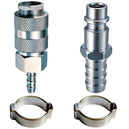Разъемное соединение Fubag рапид (муфта) елочка 6мм + разъемное соединение рапид (штуцер) елочка 6 мм + 2 обжимных кольца 6x11мм в блистере
