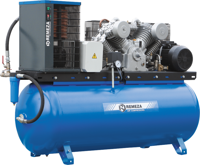 Ременной поршневой компрессор Remeza СБ4/Ф-500 LT100 Д предназначен для сжатия и подачи воздуха под давлением в пневмоинструменты, такие как краскопульты, дрели, продувочные пистолеты, устройства для подкачки шин и гайковерты. Агрегат имеет широкую сферу применения: его активно используют как в строительстве, так и в авторемонтном деле. Трехфазный двигатель мощностью 7500 Вт и трехцилиндровая головка компрессора гарантируют высокую производительность на выходе - 1400 литров в минуту.