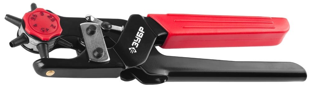 Револьверный дырокол для кожи Зубр Мастер 6-в-1, 2-4,5мм 22945 предназначен для выполнения круглых отверстий (от 2мм до 4,5мм) в картоне, коже, резине и пластике.